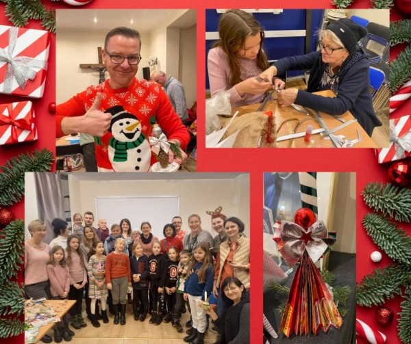 W rytmie świątecznych przebojów, smakując czekoladę na gorąco i barszczyk z uszkami tworzyliśmy stroki, gwiazdeczki, aniołki, karteczki i inne wspaniałe ozdoby. Część z nich trafiła do Skrzyni Skarbów na świąteczny kiermasz jako rękodzieło na Fundacyjne Dzieło.